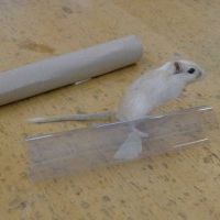 Wie schnell läuft eine Maus? Was fressen Mäuse am liebsten? Können Mäuse auf Bäume klettern? Und ähnlichen Fragen gingen die Schüler in selbsterdachten Versuchsaufbauten nach. Sie machten schnell die Erfahrung, dass ihre Experimente am besten gelangen, wenn sie ganz still sind und unsere Mongolischen Rennmäuse aus einiger Entfernung beobachten. Aber auch das hieß noch lange nicht, dass die Mäuse auch das taten, was im Versuchsaufbau vorgesehen war: Viel lieber als im Laufrad zu rennen, schauten sie sich auf dem Tisch um oder suchten nach Futter. Warum den dicken Ast erklettern, wenn es in der Ecke der Versuchskiste doch viel verlockender roch?