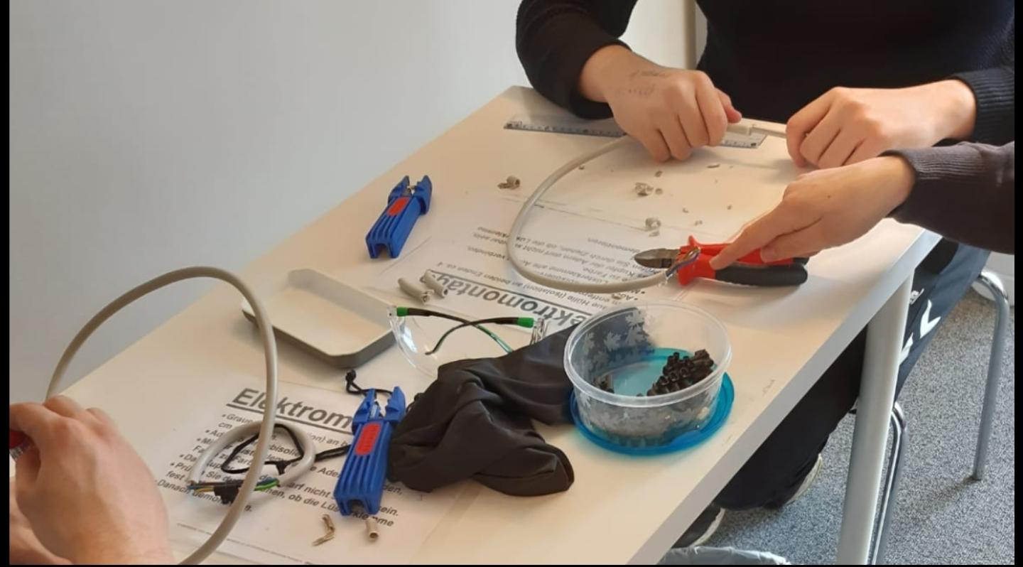Spielerisch wurde sich über Ausbildungen, den Bewerbungsprozess und verschiedene Berufe informiert und Bewerbungsgespräche mit den Menties geübt. Es gab Stationen, an denen die Schüler:innen selbst bauen, Kabel verlegen und an Attrappen Zähne reinigen konnten.