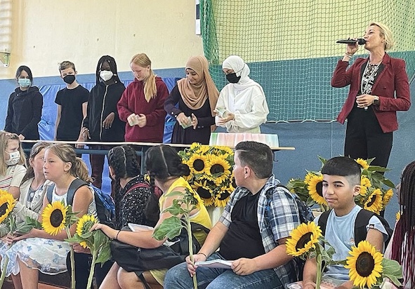 Als Begrüßungsgeschenk erhielten die Schüler*innen neben einer Sonnenblume auch unseren Schulplaner, der bei der Organisation des Schulalltags eine große Hilfe darstellt und die Kommunikation mit den Eltern zusätzlich unterstützt.