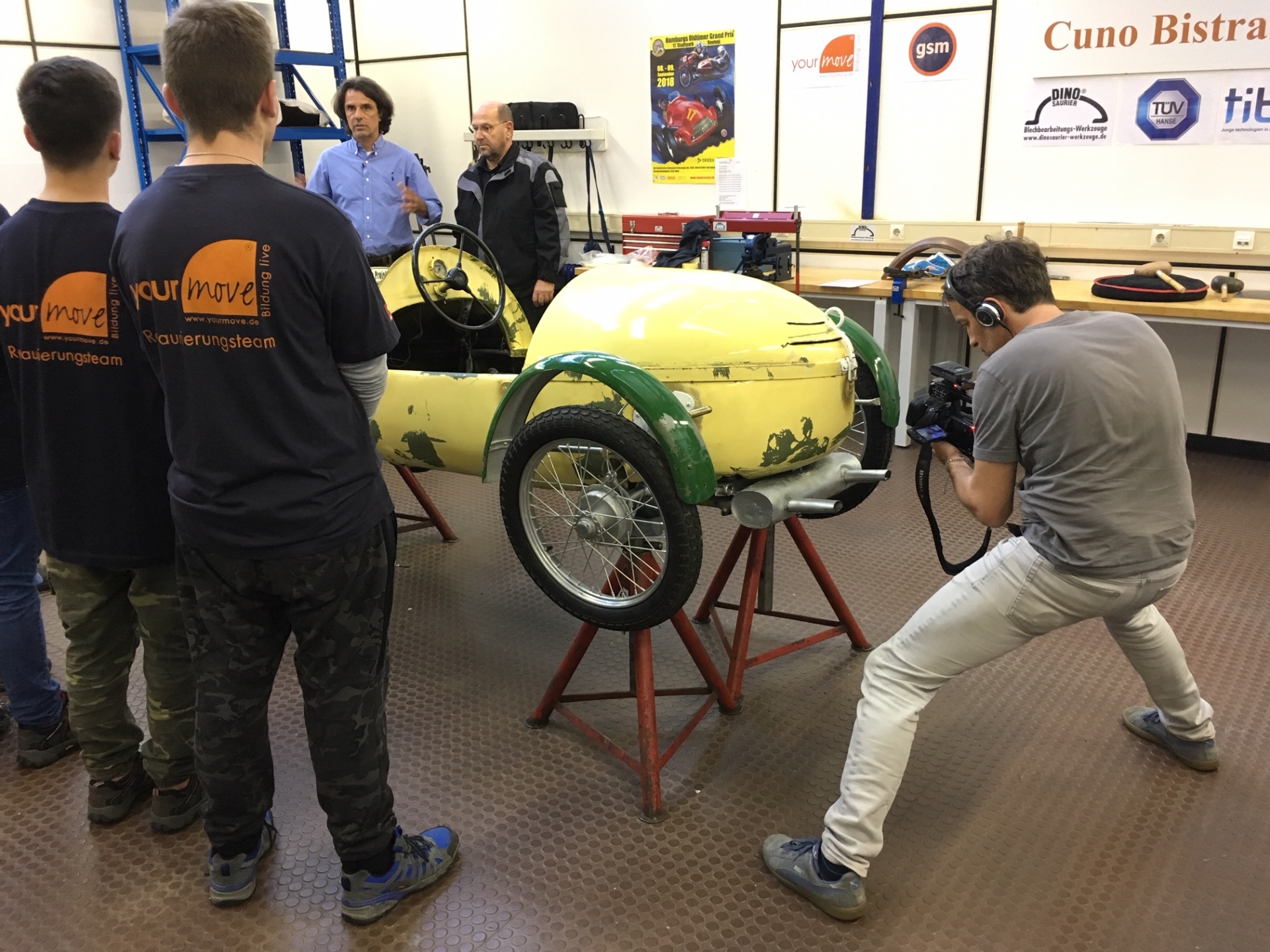 Und eben dieser entzückende, kleine, gut 6 PS starke Straßenrenner, wird jetzt von Schülern der Stadtteilschule Mümmelmannsberg restauriert. In einer professionellen Werkstatt und unter fachkundiger Anleitung des Vereins "yourmove" . Insgesamt anderthalb Jahre wird dieses Projekt laufen.