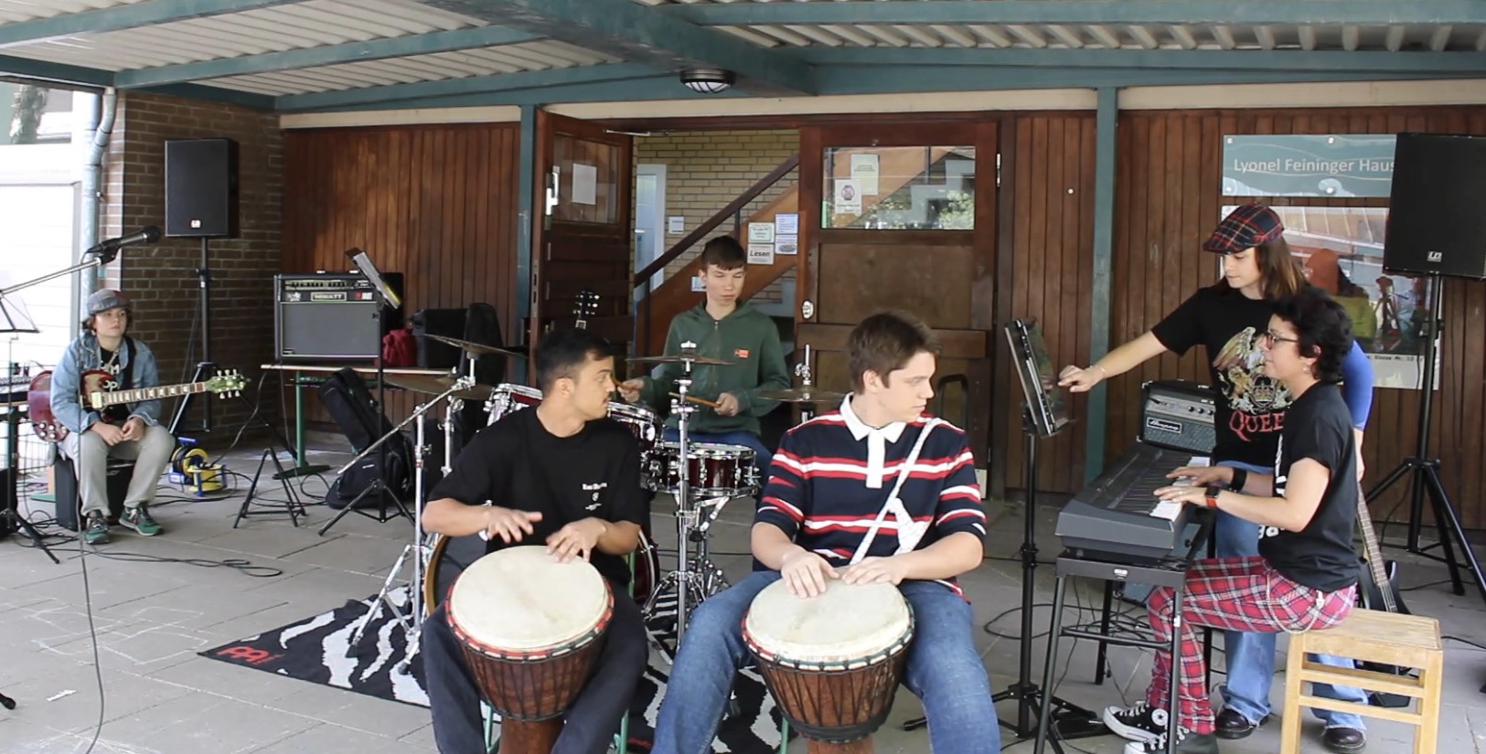 Die Schüler der Stadtteilschule Mümmelmannsberg, Maksim (VK C, Schlagzeug / Djembe), Illia (10 G, Schlagzeug) und Zaim (11 A, Gitarre / Djembe) haben großes Engagement gezeigt und unsere Schule auf einem sehr hohen musikalischen Niveau repräsentiert.