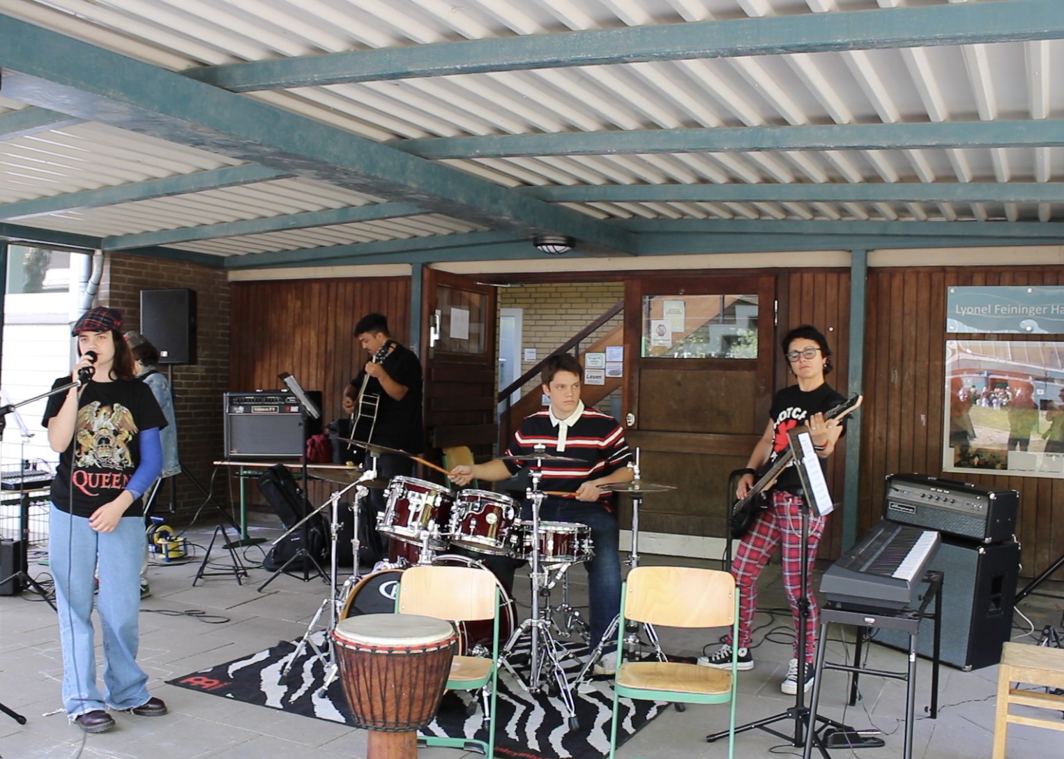 Der Auftritt der Band war insofern eine Premiere und zudem noch eine hervorragende Leistung der Schülerinnen und Schülern, als dass sie sich als Band zum ersten Mal für den Auftritt getroffen und in nur zwei Probe-Sessions ein 30minütiges Programm vorbereitet hat.