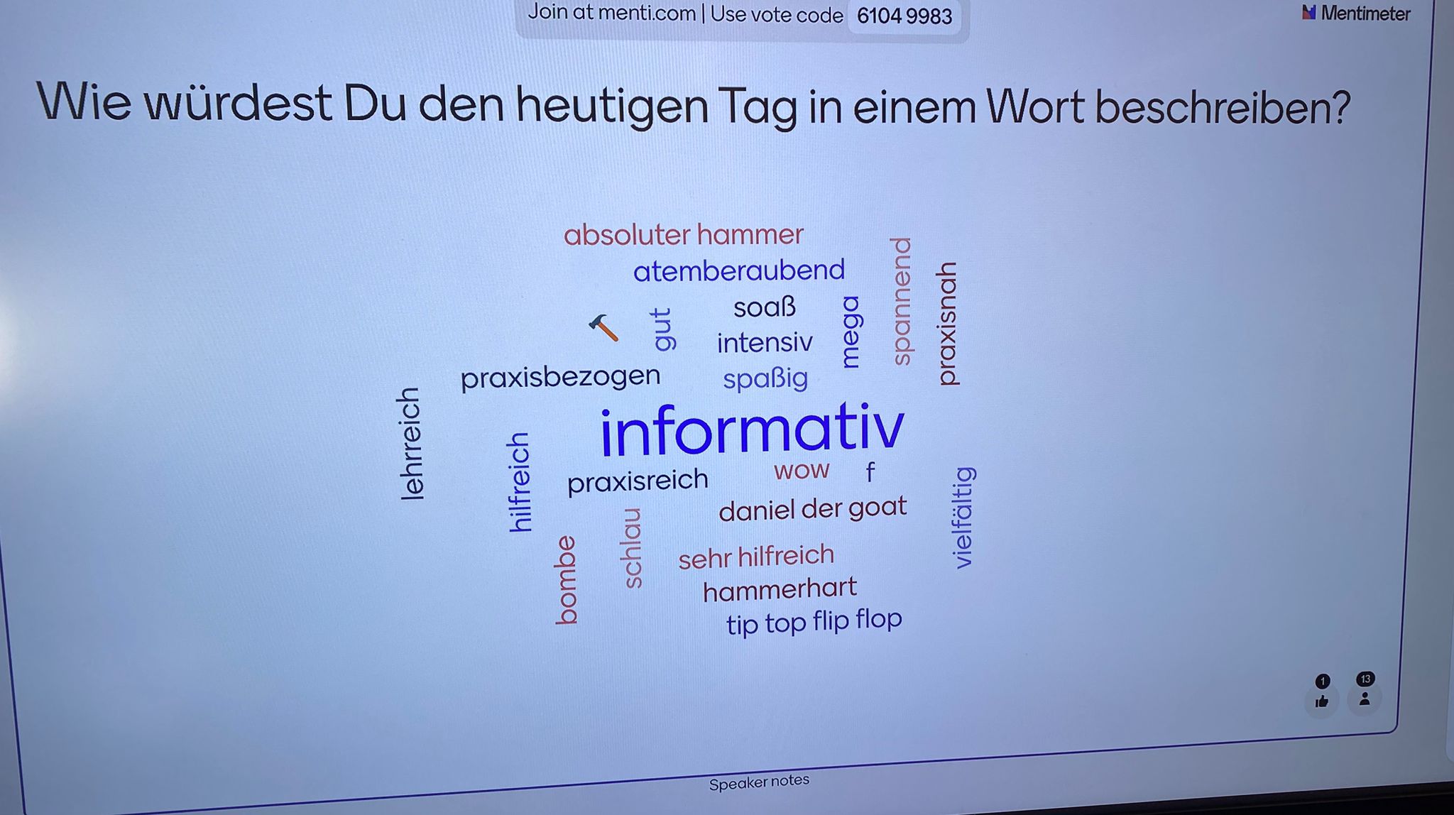 In der Abschlussrunde, begleitet von digitalen Tools wie Mentimeter, wurde deutlich: Der Workshop hat viele Aha-Momente ausgelöst und für Begeisterung gesorgt!