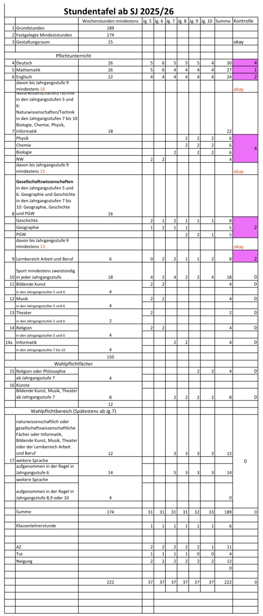 Stundentafel