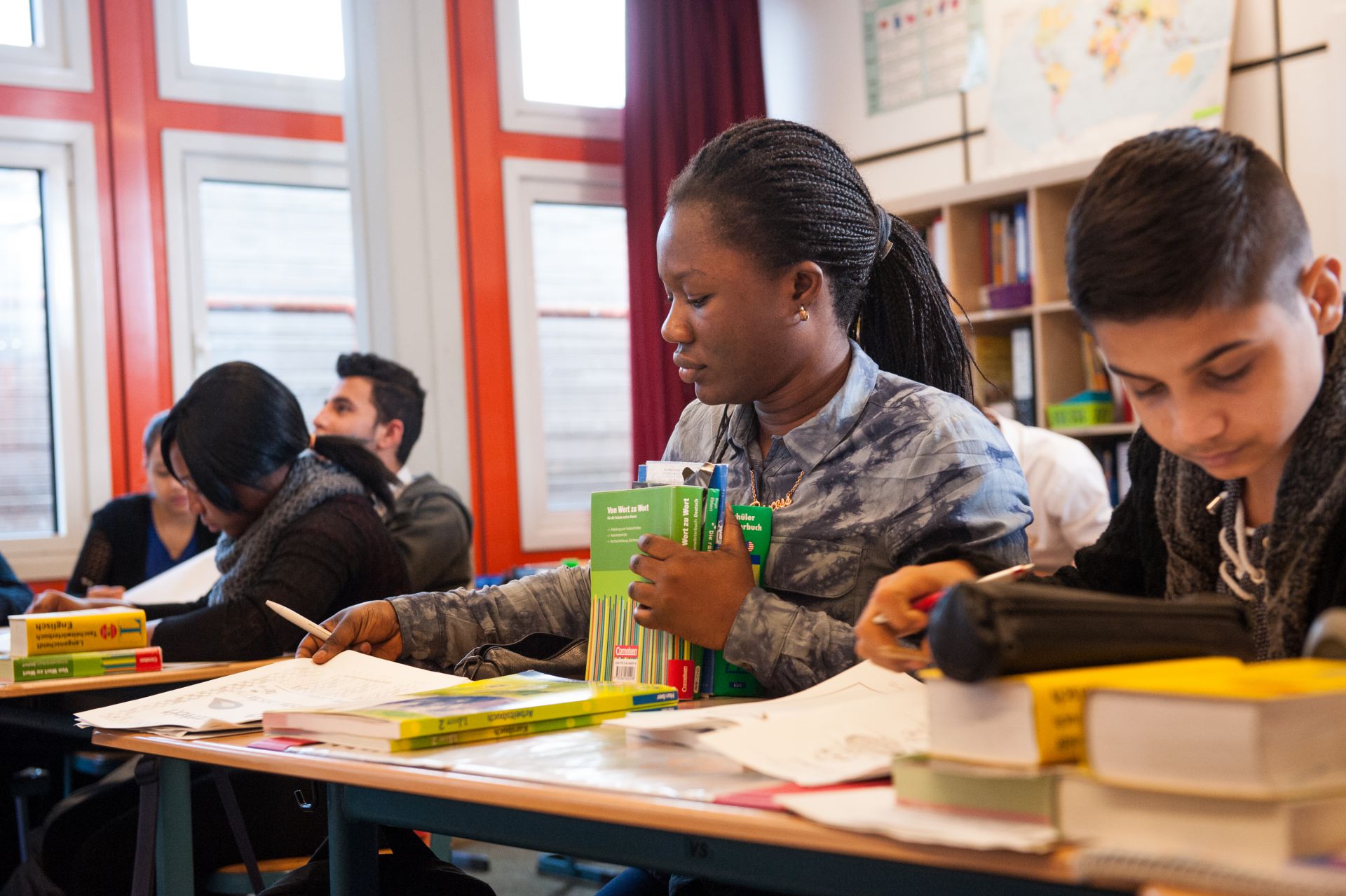Nach dem Wechsel in die Regelklasse erhalten die ehemaligen IVK- Schülerinnen und Schüler ein Jahr zusätzlich Deutschunterricht im Sprachkurs.