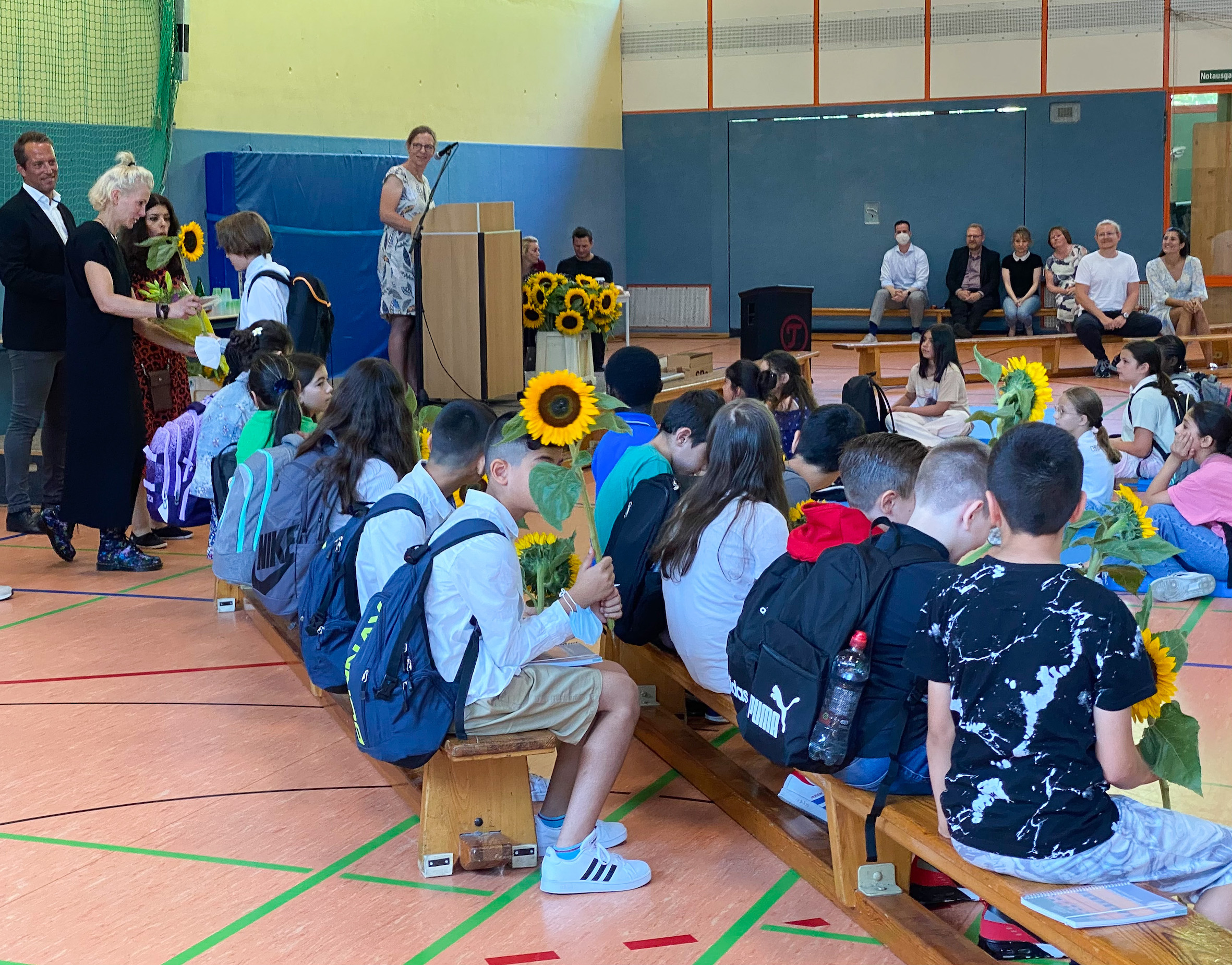 Als Begrüßungsgeschenk erhielten die Schüler*innen neben einer Sonnenblume auch unseren Schulplaner, der bei der Organisation des Schulalltags eine große Hilfe darstellt und die Kommunikation mit den Eltern zusätzlich unterstützt.