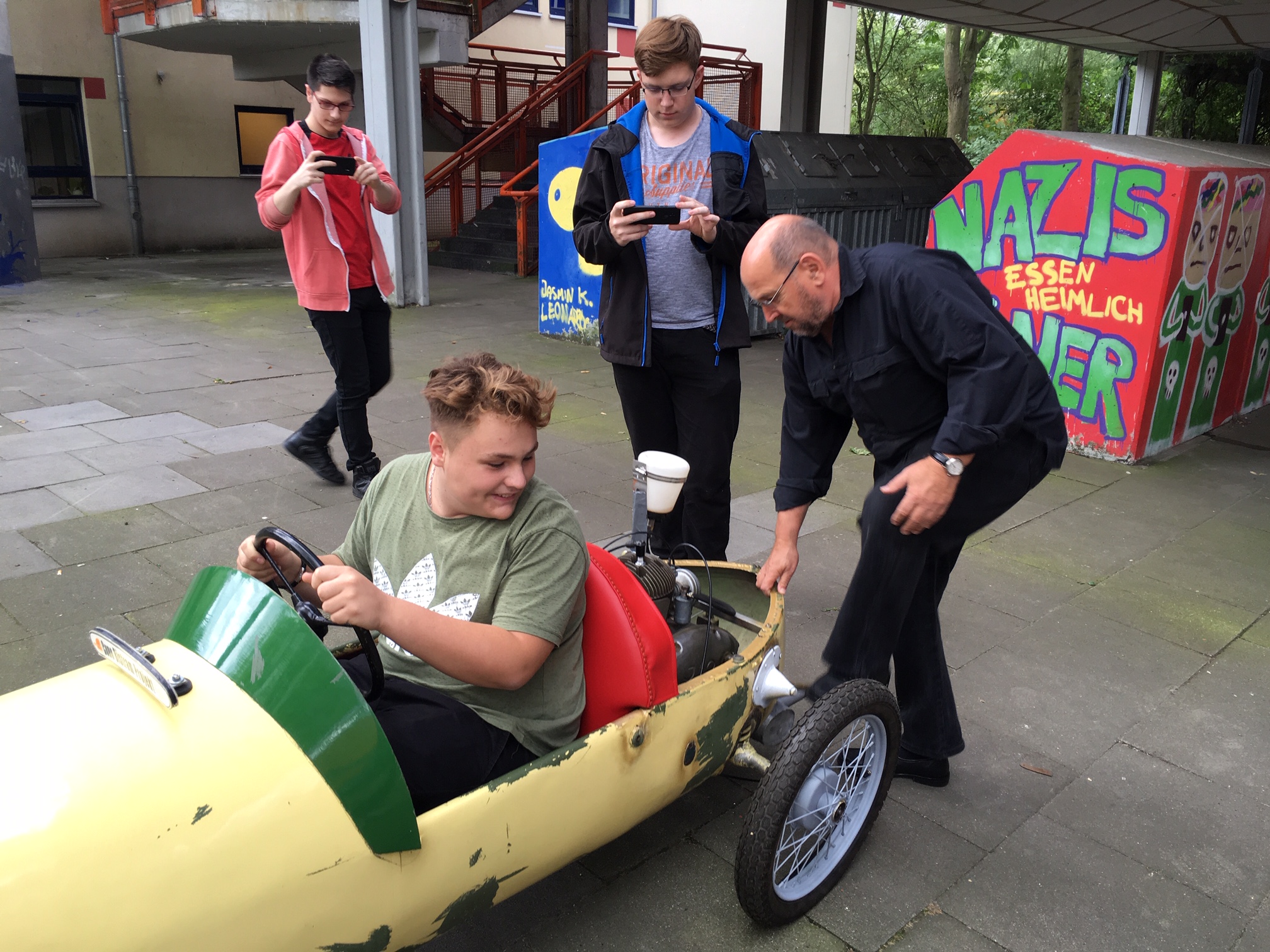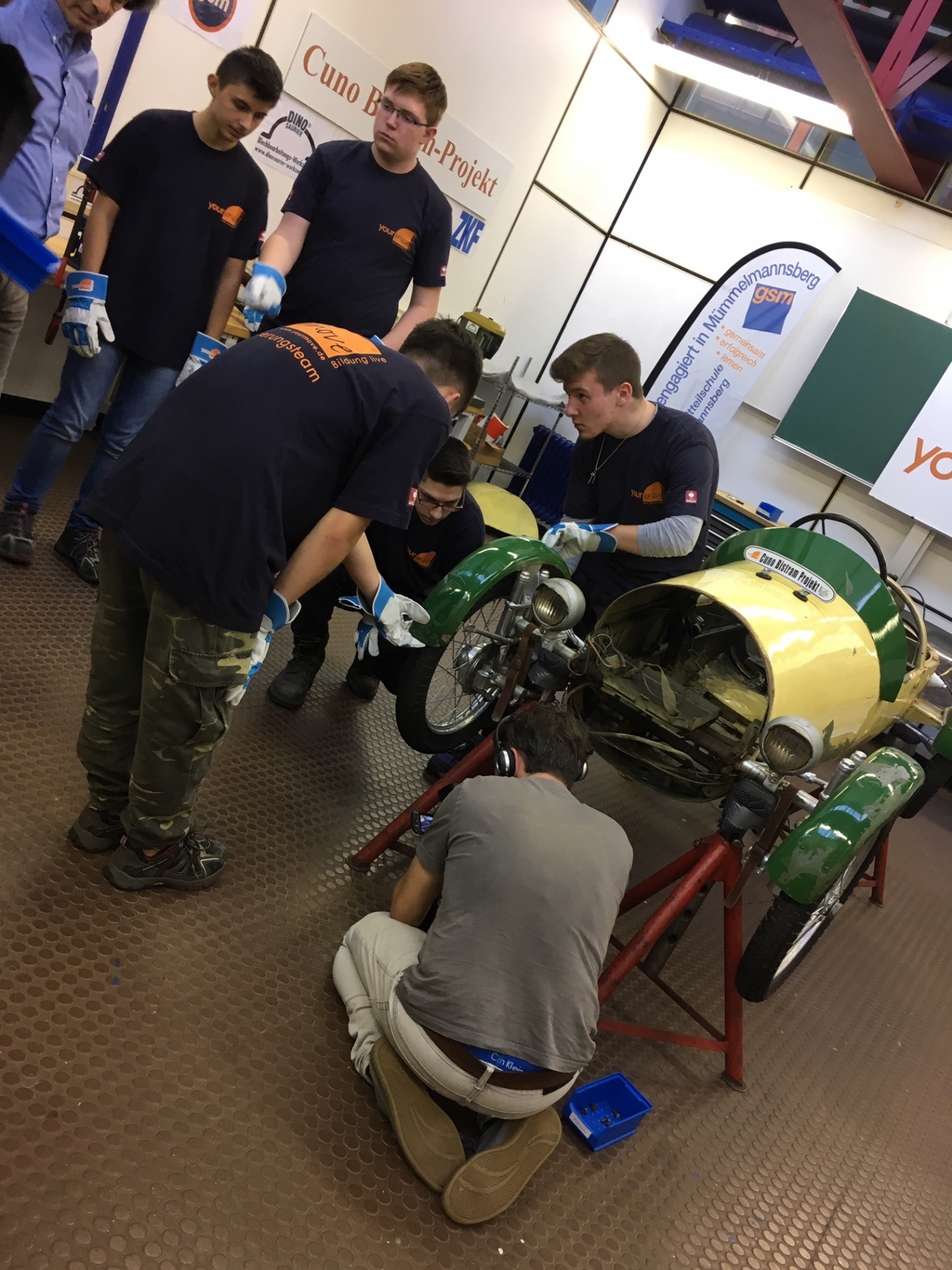 Und eben dieser entzückende, kleine, gut 6 PS starke Straßenrenner, wird jetzt von Schülern der Stadtteilschule Mümmelmannsberg restauriert. In einer professionellen Werkstatt und unter fachkundiger Anleitung des Vereins "yourmove" . Insgesamt anderthalb Jahre wird dieses Projekt laufen.