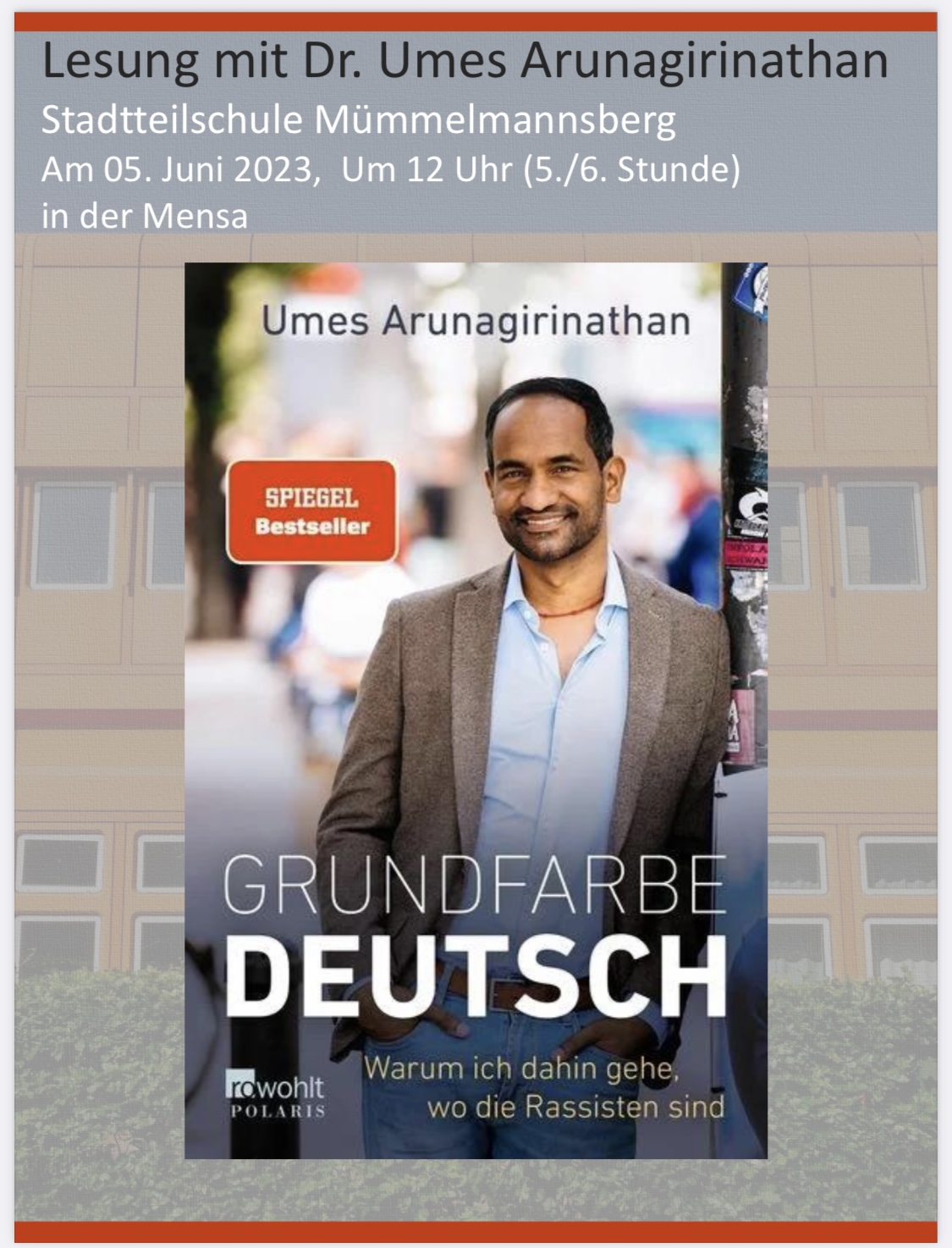 Am Montag, den 05. Juni findet eine Lesung mit Dr. Umes Arunagirinathan an unserer Schule statt!