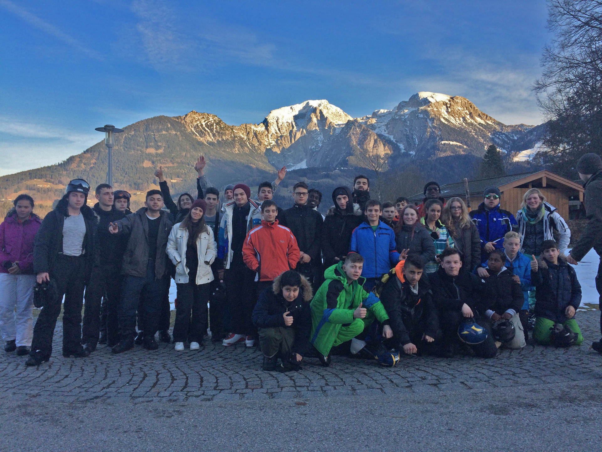 Am Samstag, den 30. Januar, starteten wir frühmorgens um 6 h mit dem Bus und über 40 Schülerinnen und Schülern auf die langersehnte Ski- und Snowboardreise an den Königsee. Wir kamen recht gut voran und erreichten gegen Abend die Alpen. Schon aus der Ferne, von einem Rastplatz aus, konnten wir die schneebedeckten Berge in der Abenddämmerung erkennen. Vor Ort in Schönau erwartete uns dann eine erstklassige Unterkunft mit geräumigen Zimmern und tollem Essen, die uns für die kommenden Nächte beherbergen sollte.