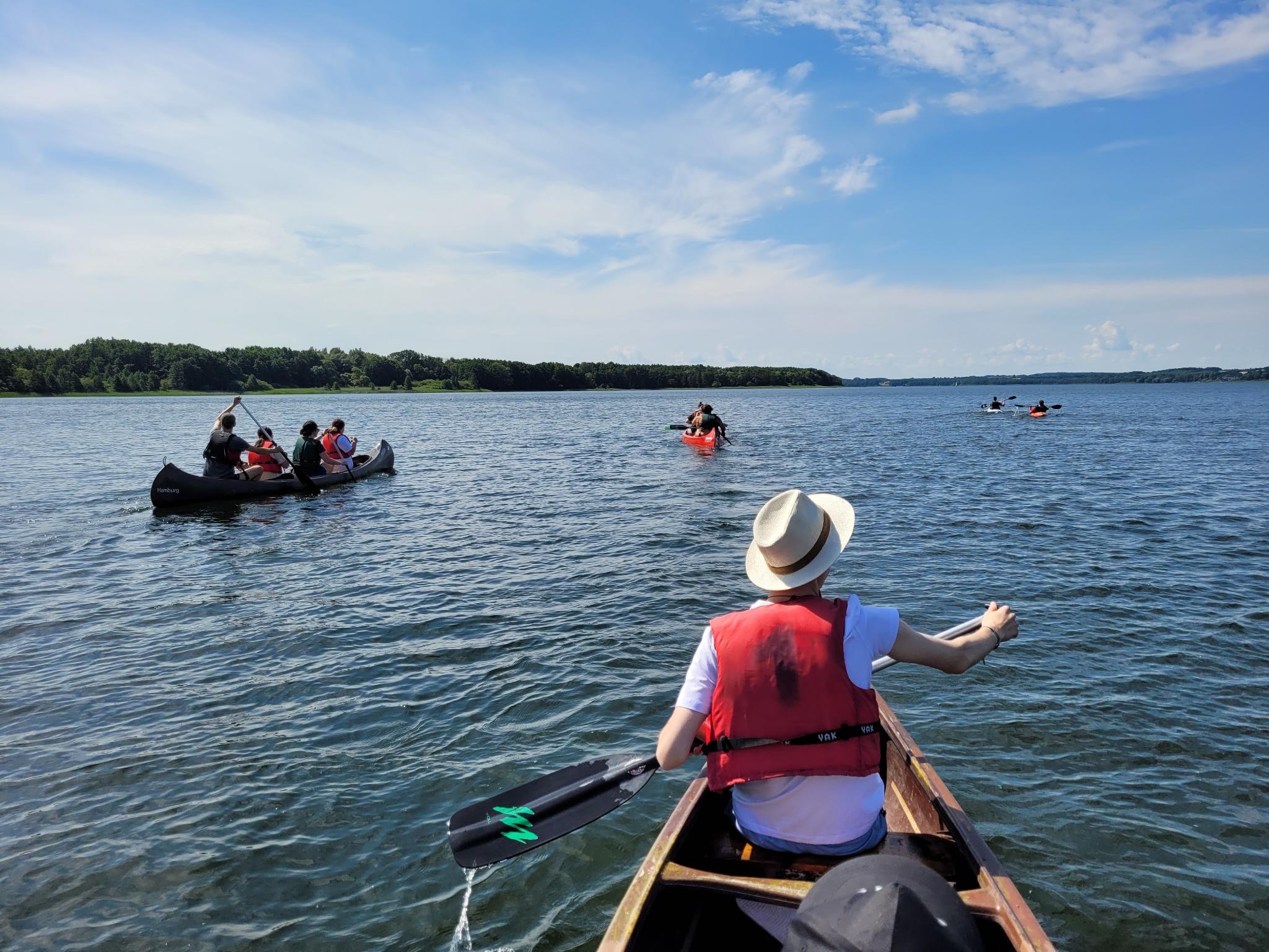 "Der erste Paddeltag führte uns knapp 15 km von Lübeck entlang der Wakenitz bis zum Ratzeburger See, am zweiten Tag 10 km über den Ratzeburger See und am dritten Paddeltag 14 km über den Küchensee und den Schaalseekanal bis zum Schaalsee.