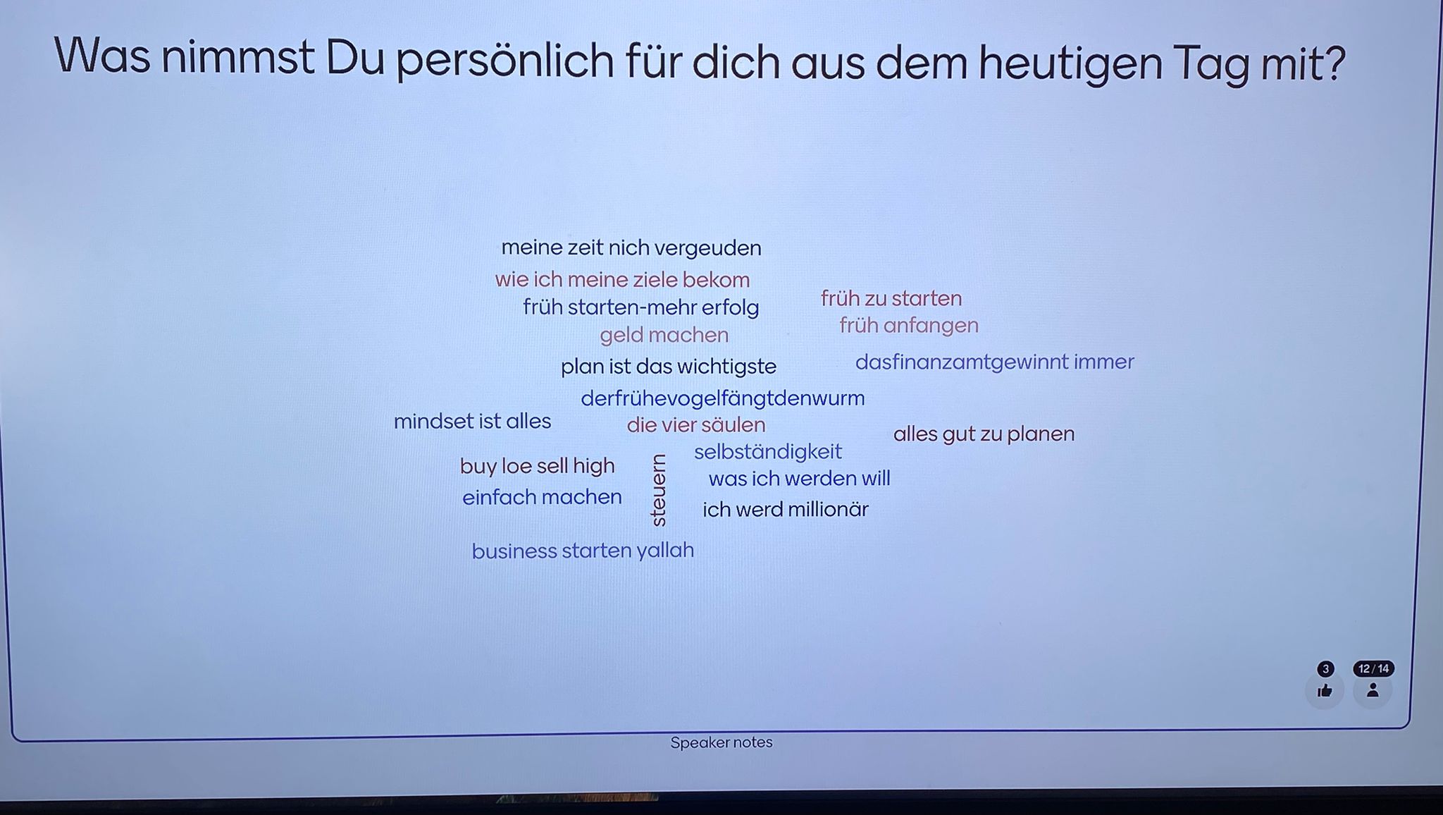 In dieser Auftaktveranstaltung wurden erste Grundlagen zum Thema Liquidität gemeinsam erarbeitet und ein ehrlicher Austausch über den persönlichen Umgang mit Geld angeregt. Besonders wichtig war hier auch die Abfrage konkreter Themenwünsche der Schülerschaft – von Fragen zur Selbstständigkeit über Steuerbasics bis hin zu Investitionen. Diese Impulse wurden aufgenommen, gebündelt und bildeten die Basis für den strukturierten Ablauf des späteren Workshop-Tags.